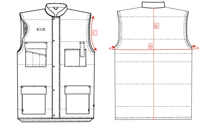 Total chest measurement | A | 106 | 114 | 122 | 130 | 138 | 146 | 154 |
